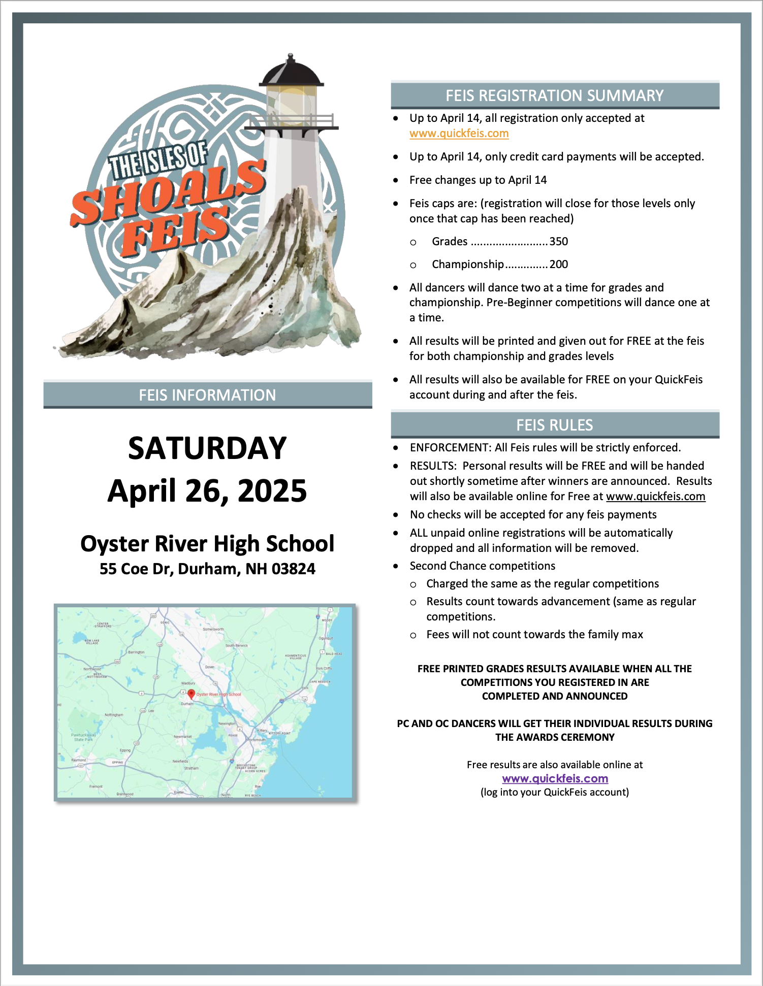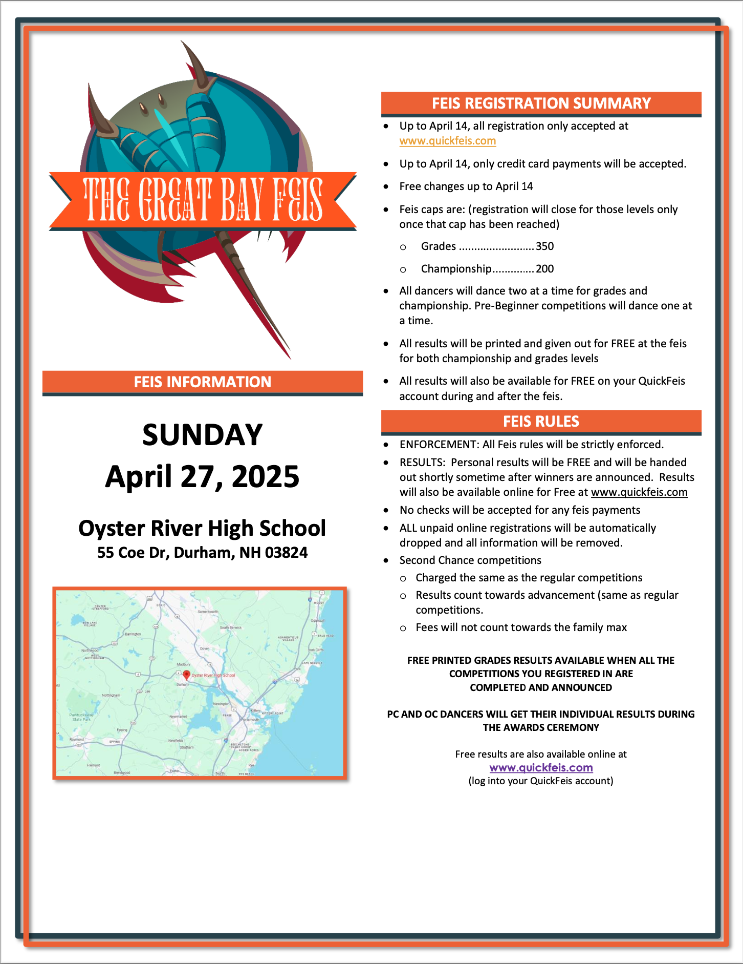 Experience the local culture and check out the many things to do in the area before or after the feis. Consider starting or ending your spring break with our double feis weekend for a full New England experience.